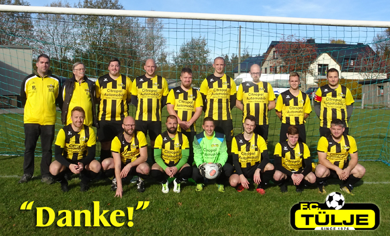Der FC Tülje sagt "Danke"! Das Jahr neigt sich dem Ende entgegen und deswegen möchte sich der FC Tülje bei den Vereinsmitgliedern und ehrenamtlichen Helfern für das Engagement in diesem Jahr, sowie bei allen Besuchern und Sponsoren (Essensunterlage) unseres diesjährigen Pasta-Abends bedanken. Den Trikot-Sponsoren Citropol Automobile, Café Select und Papeterie Renard gilt der Dank für die großzügige finanzielle Mithilfe. Für die nächste Saison suchen wir noch gute und zuverlässige Spieler! Bei Interesse einfach unter tuelje@yahoo.de melden. |