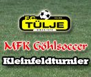 Göhlsoccer-Kleinfeldturnier: Der FC Tülje agierte einfallslos und ging ohne Stammtorwart unter ![]() Fazit: Ohne festen Torwart ging der FC Tülje in dieses Turnier und musste dies teuer bezahlen. Jedoch darf man die Niederlagen nicht nur am fehlenden Schlussmann festmachen. Dem FC Tülje fehlt einfach die nötige Kleinfeld-Erfahrung und manchmal sogar die Motivation, um bei solchen Turnieren für Überraschungen sorgen zu können. Allerdings sollte man sich jetzt wieder auf die Liga und den Supercup konzentrieren, die auch unter dem Strich viel wichtiger für unser junges Team sind. Der Turnierverlauf am Samstag: MF Penarol - FC Tülje 10-1 FC Tülje - FC Smierlapp 3-7 FC Tülje - FC Mec Mec 0-9 FC Tülje - Frisch Fleisch Theke 0-3 (FF) Für den FC Tülje spielten: Volders Patrick, Held Achim, Chris Röhn, Baerten Michael, Dorr Grégory, Steier Michael, Joël Seffer, Frank Göran und Held Marco Für den FC Tülje trafen: Röhn (2x), M. Held (1x), Volders (1x) Der FC Tülje bedankt sich rechtherzlich bei den Organisatoren des MF Göhlsoccer für dieses sehr gut organisierte Kleinfeldturnier und verbleibt mit freundlichen Grüßen. |