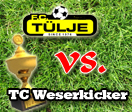 Sensation: FC Tülje gewinnt SuperCup II gegen TC Weserkicker ![]() Zu Beginn der ersten Halbzeit musste sich der FC Tülje erst einmal an das schnellere Tempo der Eupener gewöhnen, doch nach einer Viertelstunde spielten die Kelmiser organisiert und setzen die ersten Akzente nach vorne. Gefährlich wurde es allerdings nur vor dem Tor von Tülje-Torwart Stefan Knittel, der jedoch stets mit guten Paraden die Null halten konnte. Nach einer halben Stunde war es dann soweit: Mike Laschet erkämpfte sich den Ball, lief sich frei und erzielte mit einem strammen Schuss das 1-0. Nach diesem Treffer waren die Weserkicker gefordert und kamen erneut zu einigen guten Chancen, die jedoch von der starkspielenden kelmiser Hintermannschaft zunichte gemacht wurden. Bis zur Halbzeitpause blieb es beim unerwarteten 1-0 für den Tabellenführer der 2. Division. In der zweiten Halbzeit spielte Tülje konzentriert weiter. Die Weserkicker nahmen jetzt das Heft in die Hände und machten das Spiel, was aber zu keinen zwingenden Tormöglichkeiten führte. Nach zwanzig Minuten tauchte dann Besnik Kukiq vor dem Strafraum der Eupener auf und wurde gefoult: der Schiedsrichter entschied auf Freistoß und Spielmacher Kukiq zirkelte den Ball unhaltbar zum 2-0 in die linke Ecke. Jetzt war die Sensation zum Greifen nahe. Die Weserkicker warfen bis zum Ende nochmal alles nach vorne, wodurch Tülje mehr Freiräume bekam und noch einige gute Möglichkeiten hatte, das Ergebnis auszubauen. Am Ende bleib es aber beim überraschenden aber verdienten 2-0 für die "Tüljaner". Damit hatten die wenigsten gerechnet, aber der Pokal hat schließlich seine eigenen Gesetze... Fazit: Es war eine hervorragende Leistung des FC Tülje, der nicht nur mit seinem fußballerischen Können, sondern auch erneut durch seinen Kampfgeist diesen Pokal gewinnen konnte. Von der ersten Sekunde an hielt das Team zusammen und spielte gut gestaffelt und konzentriert. Wenn man diese Einstellung auch in den verbleibenden 3 Ligaspielen behält, darf uns der Titel theoretisch nicht mehr zu nehmen sein... Respekt an die Mannschaft! Ebenfalls will sich der Vorstand des FC Tülje beim EAFV für die tolle Organisation bedanken und ein Lob für die Fairness der TC Weserkicker aussprechen. FC Tülje - TC Weserkicker 2-0 (1-0) FC Tülje: S. Knittel, T. Hermanns, M. El Azrak, B. Klinkenberg, P. Piters, D. Wertz, D. Strougmayer, P. Volders, C. Röhn, B. Kukiq, G. Frank, M. Steier, A. Boutalib, M. Laschet Tore: Laschet 1-0, Kukiq 2-0 Gelbe Karte: / Rote Karte: / - Die Ergebnisse der anderen Partien - RC Kettenis A - GS Hauset 6-1 AS Viaduc - Eupen United 3-5 FC Tornado - ASV Werth 1-1 (4-2 n. E.) |